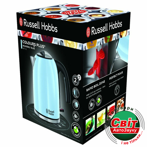 Електрочайник RUSSELL HOBBS 20417-70 Colours PlusЧайник Colours Plus — нежного небесно-голубого цвета станет стильным дополнением каждой кухни. Его главная особенность — правильное сочетание привлекательного дизайна и функциональности.