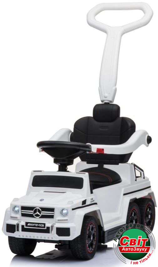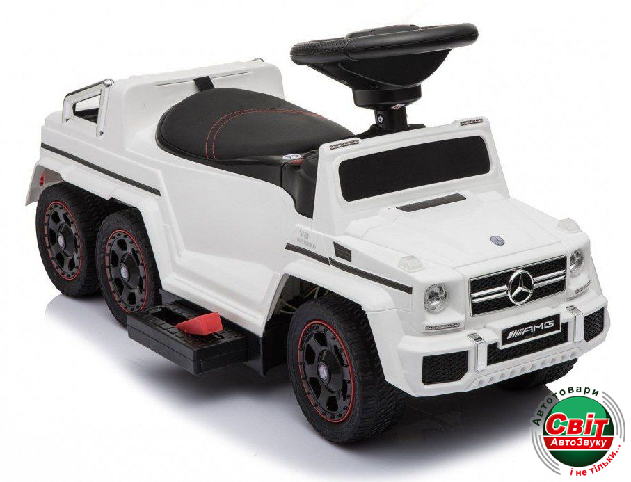 Електромобіль-каталка Kidsauto Mercedes-Benz G63 AMG WhiteКаталка Mercedes-Benz G63 AMG 6x6 - это каталка-электрокар, на которой родители могут кататься вместе с детьми. Переверните задний бокс для игрушек и получится сиденье для родителей.