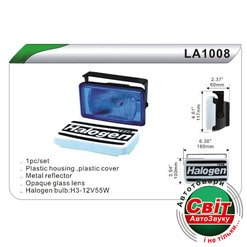 - ›Фара додаткова DLAA 1008 W/H3-12V-55W/160*100mm/кришка (шт.)