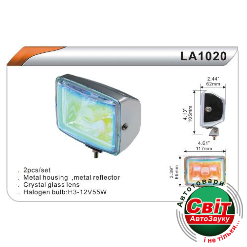- ›Фара додаткова DLAA 1020 W хром/H3-12V-55W/117*86mm (компл)