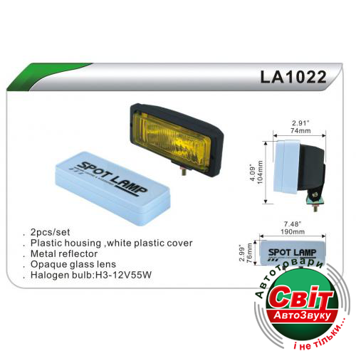 Это дополнительная фара от компании DLAA, используется как вспомогательная для главной оптики Вашего автомобиля. Применяется как фара противотуманного света. Они помогают видеть дорогу даже при наиболее неблагоприятных погодных условиях, подсвечивая трассу и обозначают ваш автомобиль. Установка достаточно проста и не прихотливые а работе. Монтажный металлический кронштейн позволяет прикрепить фару на горизонтальную поверхность.