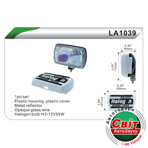 Фара додаткова DLAA 1039 W/H3-12V-55W/159*101mm/кришка (шт.)