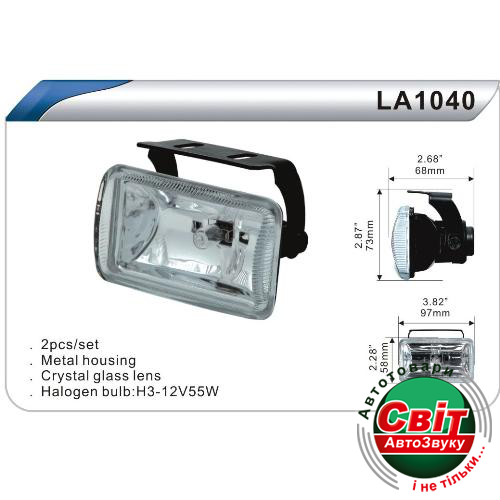 Фара додаткова DLAA 1040 RY/H3-12V-55W/97*58mm (компл)Это дополнительная фара от компании DLAA, используется как вспомогательная для главной оптики Вашего автомобиля. Применяется как фара противотуманного света. Они помогают видеть дорогу даже при наиболее неблагоприятных погодных условиях, подсвечивая трассу и обозначают ваш автомобиль. Установка достаточно проста и не прихотливые а работе. Монтажный металлический кронштейн позволяет прикрепить фару как на горизонтальную, так и на вертикальную поверхность.