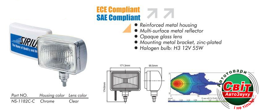- ›Фара додаткова Sirius NS-1182 C-C H3/12V/55W/172*120mm/метал (шт)