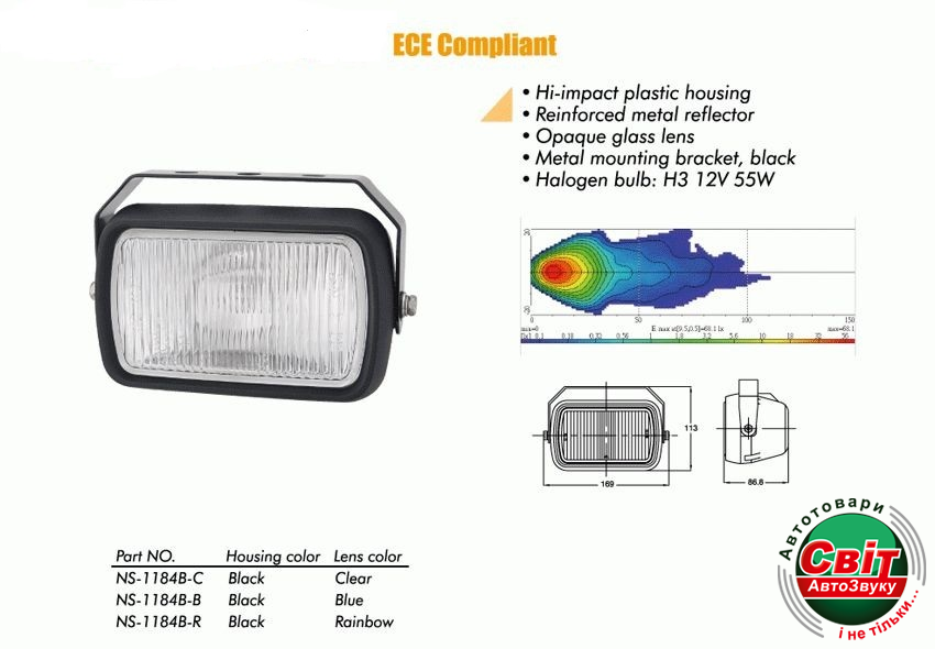 Фара додаткова Sirius NS-1184 B-C H3/12V/55W/169*100mm (шт.)Особенности: