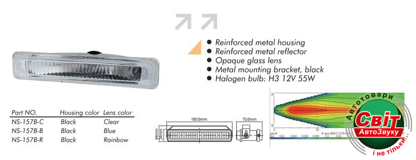 - ›Фара додаткова Sirius NS-157 B-C H3/12V/55W/180*34mm (компл)