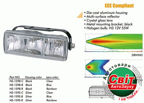 - ›Фара додаткова Sirius NS-159 B-C 2xH3/12V/55W/150*60mm (компл)