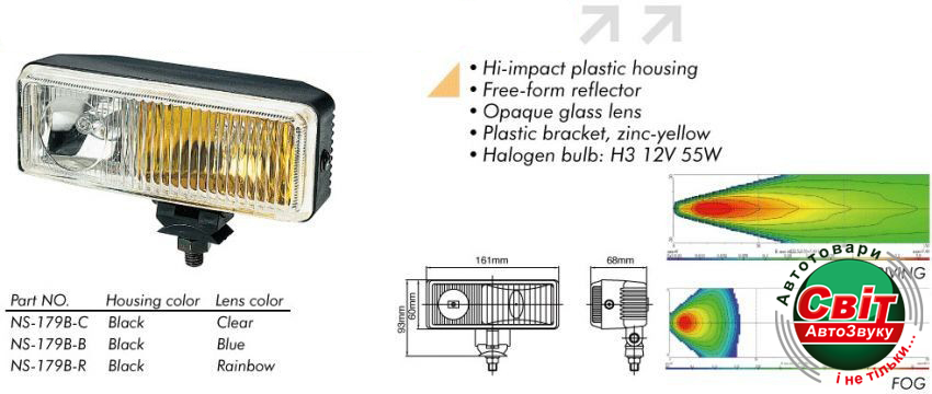 Фара додаткова Sirius NS-179 B-C 2xH3/12V/55W/161*60mm (компл)