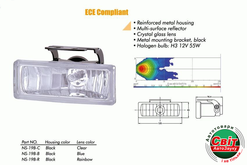 - ›Фара додаткова Sirius NS-19 B-C H3/12V/55W/125*45mm (компл)