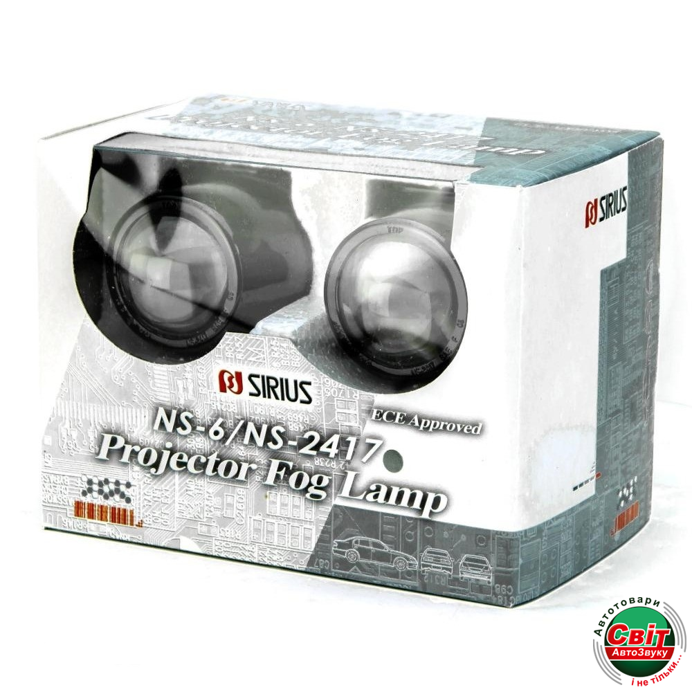 - ›Фара додаткова Sirius NS-2417 B-C H3/12V/55W/68*57mm/линза под ксенон (компл)