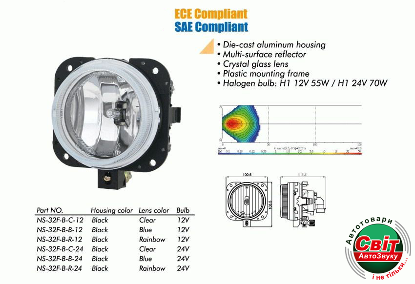 - ›Фара додаткова Sirius NS-32 F-C H1/12V/55W/модуль 4"/D=95mm (шт.)