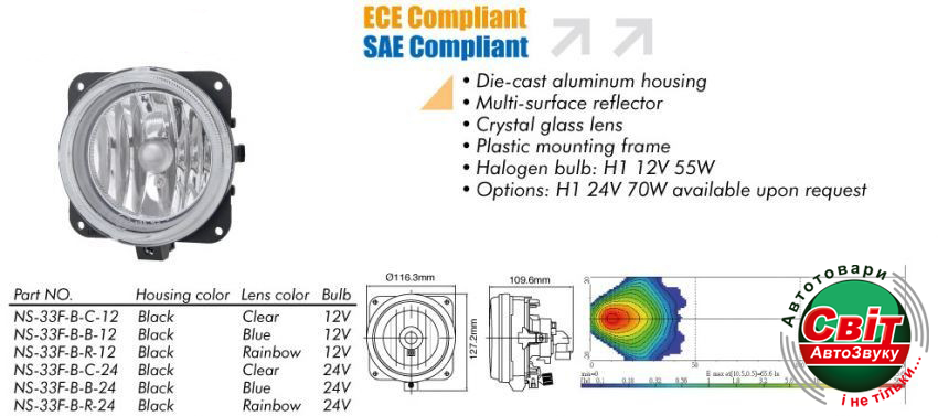Фото Фара додаткова Sirius NS-33 F-C H1/12V/55W/D=116mm/модуль 5