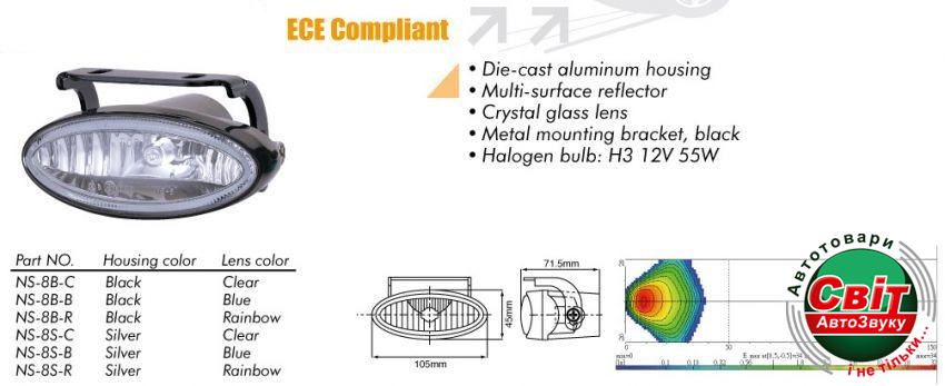 - ›Фара додаткова Sirius NS-8 B-C H3/12V/55W/105*45mm (компл)