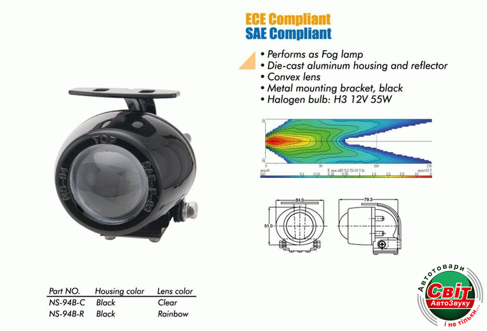 - ›Фара додаткова Sirius NS-94 B-C H3/12V/55W/64*51mm/линза (компл)