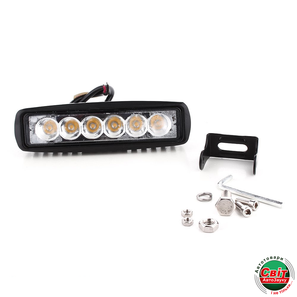 В данной модели шесть диодов с высокой интенсивностью и сроком эксплуатации более 30 000 часов. Мощность потребления одного диода 3 Вт, в суме дает мощность фары 18 Вт, а сила светового потока 540 Лм. Свет белый яркий, с цветовой температурой 6000 К, что дает голубой оттенок. Диапазон рабочего напряжения постоянного тока от 12 В до 24 В.