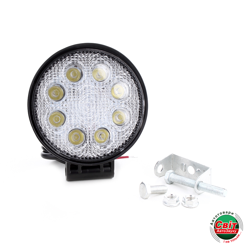 В данной модели 8 диодов с высокой интенсивности и длительным сроком службы, более 30 000 часов. Потребляемая мощность одного диода 3 Вт, что в сумме дает потребляемую мощность фары в 24 Вт. Свет белый яркий, с цветовой температурой 6000 К, что дает голубой оттенок. Диапазон рабочего напряжения постоянного тока от 12 В до 24 В. Металлический отражатель формирует луч направленный, с небольшим лучом рассеивания.