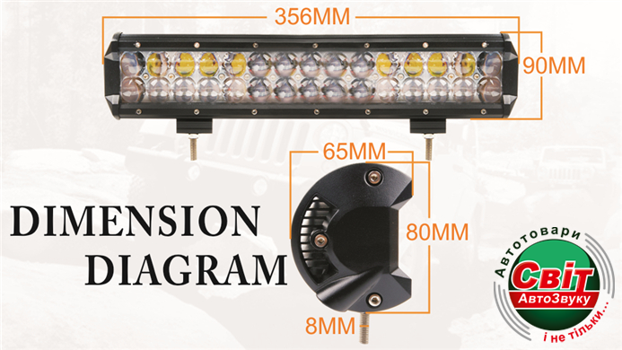 - Размер с креплением (Ш х В х Г): 356 × 90 × 65 мм