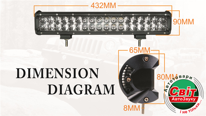 - Размер с креплением (Ш х В х Г): 432 × 90 × 65 мм
