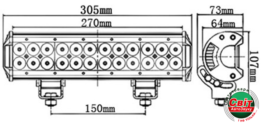 - Размер с креплением (Ш х В х Г): 305 × 107 × 73 мм