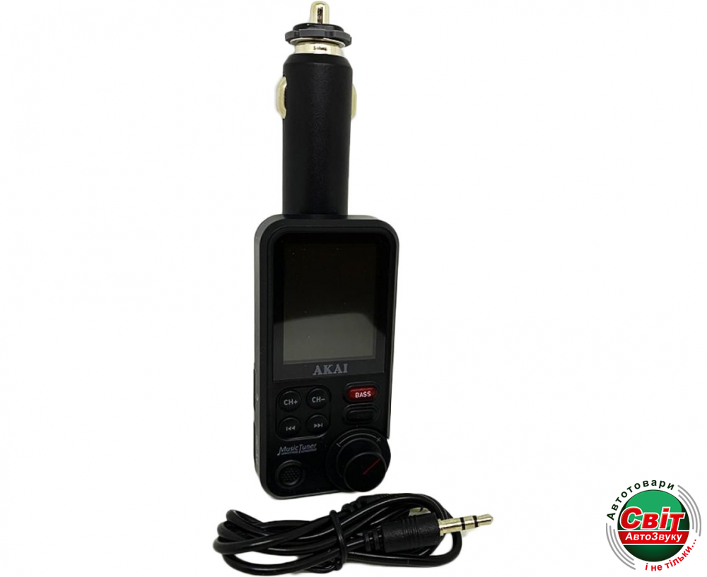 FM-модулятор Akai FMT-93BTЯкщо Ви проводите багато часу за кермом авто і хочете слухати музику в хорошій якості, не переобтяжуючи себе зайвими дротами, то Вам безперечно потрібен автомобільний FM модулятор AKAI FMT-93BT. Налаштуйте його на вільний радіо-канал автомагнітоли. Таким чином, можна легко вдосконалити аудіосистему Вашого автомобіля та отримати можливість відтворювати звук з різних носіїв.