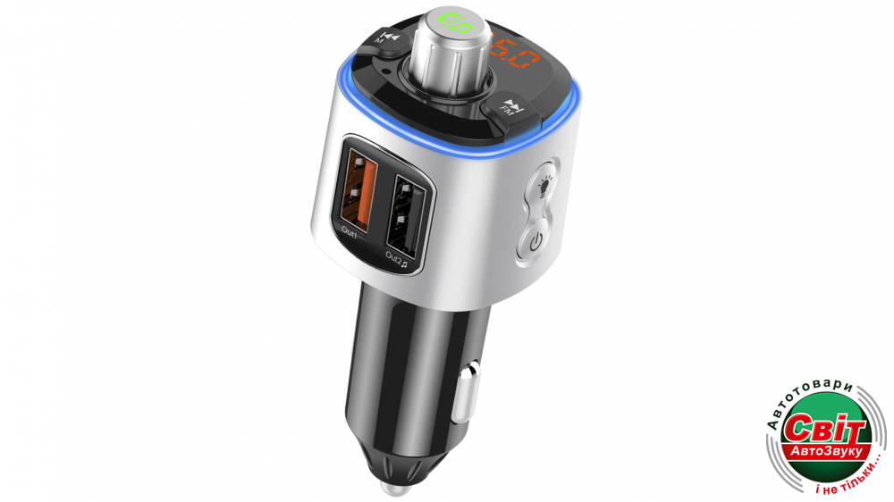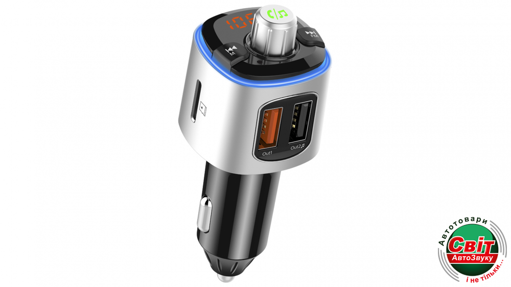 - ДодатковоФункція Hands Free. Дозволить використовувати трансмітер для розмов по телефону, тепер немає необхідності брати телефон в руки, розмова може бути виведена на динаміки або головний пристрій. Також для розмов передбачений вбудований мікрофон.