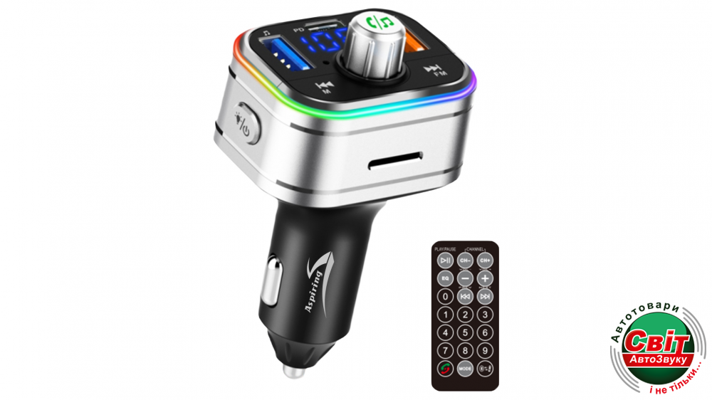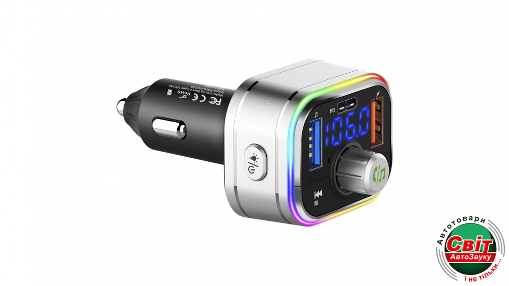 Додатково: Функція Hands Free. Дасть змогу використовувати трансмітер для розмов телефоном, тепер немає потреби брати телефон у руки, розмова може бути виведена на динаміки або головний пристрій. Також для розмов передбачений вбудований мікрофон, пульт.
