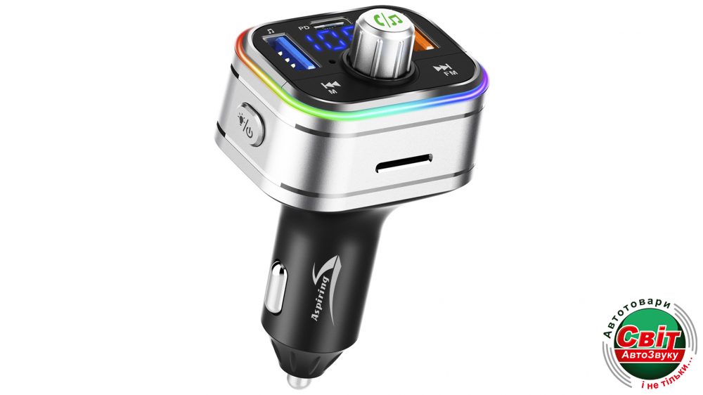 FM-трансмітер Aspiring Wave 2 служить для бездротової передачі музики з MicroSD, USB-носія або смартфона на будь-яку аудіосистему.