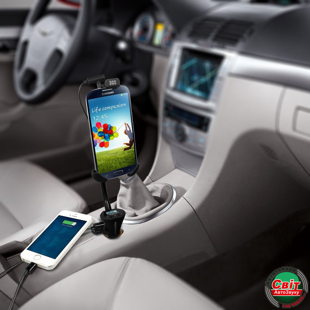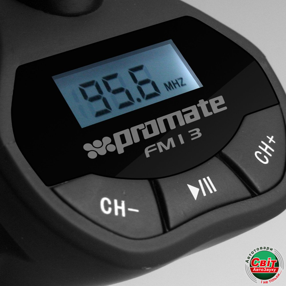 FM-модулятор Promate FM13FM13 - уникальный многофункциональный автомобильный держатель для смартфона со встроенными функциями FM модулятора, Hands-Free и зарядного устройства для всех типов USB устройств. Держатель регулируется в пределах от 106 до 135 мм по высоте и от 45-70 мм по ширине. Шарнир и гибкий кронштейн позволяют настроить любое удобное положение установленного смартфона. Встроенный кабель с разъемом 3,5 мм подключается к AUX порту любого смартфона и в комплексе со встроенным микрофоном превращает FM 13 в устройство Hands-Free