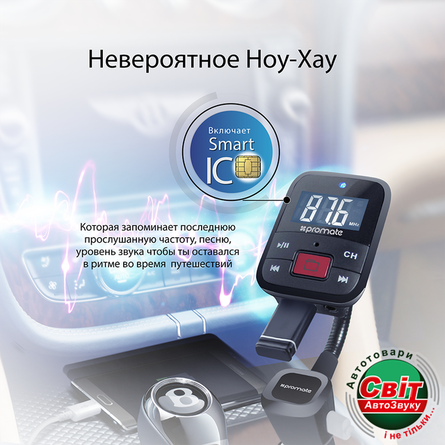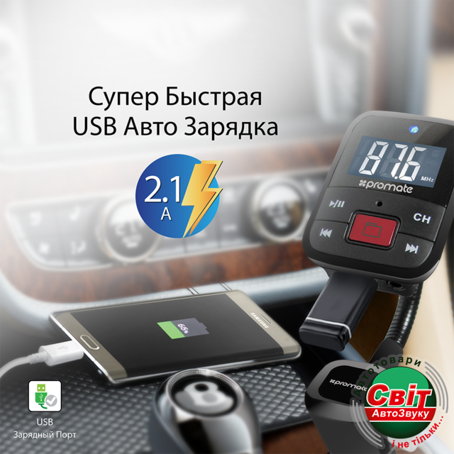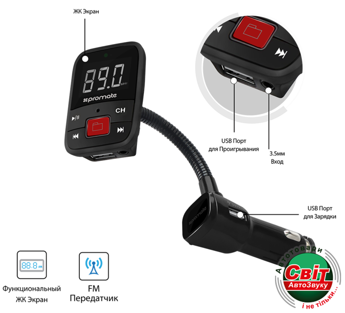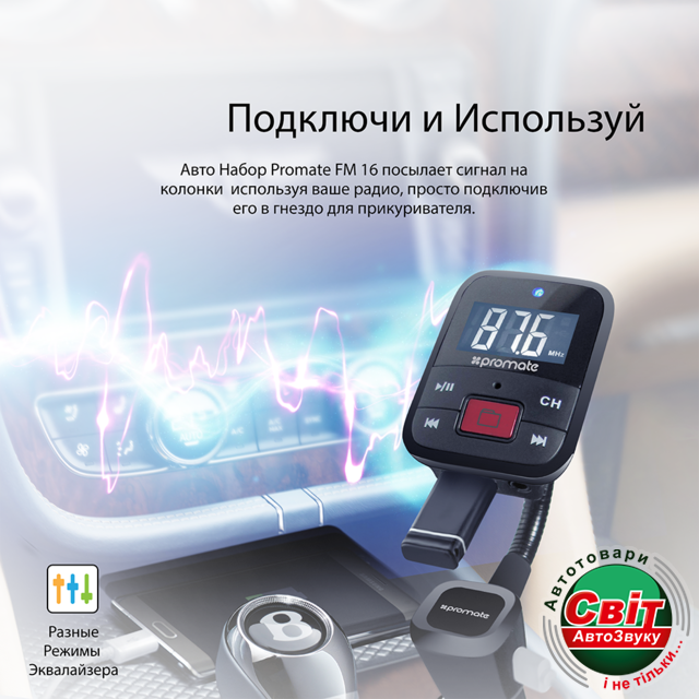 FM-модулятор Promate FM16Мультифункциональный автомобильный передатчик