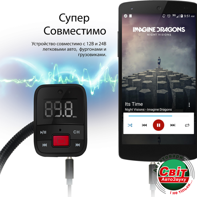 Легкая установка: просто вставьте fm16 в ваш прикуриватель и он готов к работе