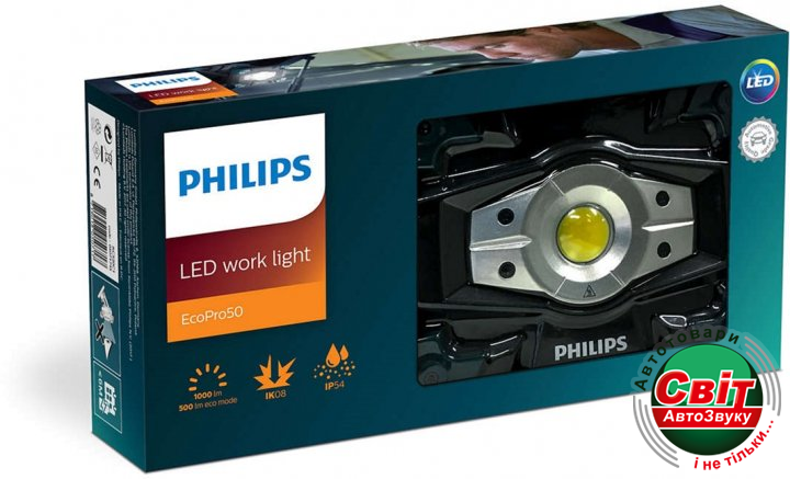 Ліхтарик Philips EcoPro50 (RC520C1)Компактный и мощный, многофункциональный и надежный светодиодный инспекционный фонарь Philips EcoPro50 обеспечивает поток яркого белого света для освещения больших площадей. Аккумулятор обеспечивает до 6 часов автономной работы.