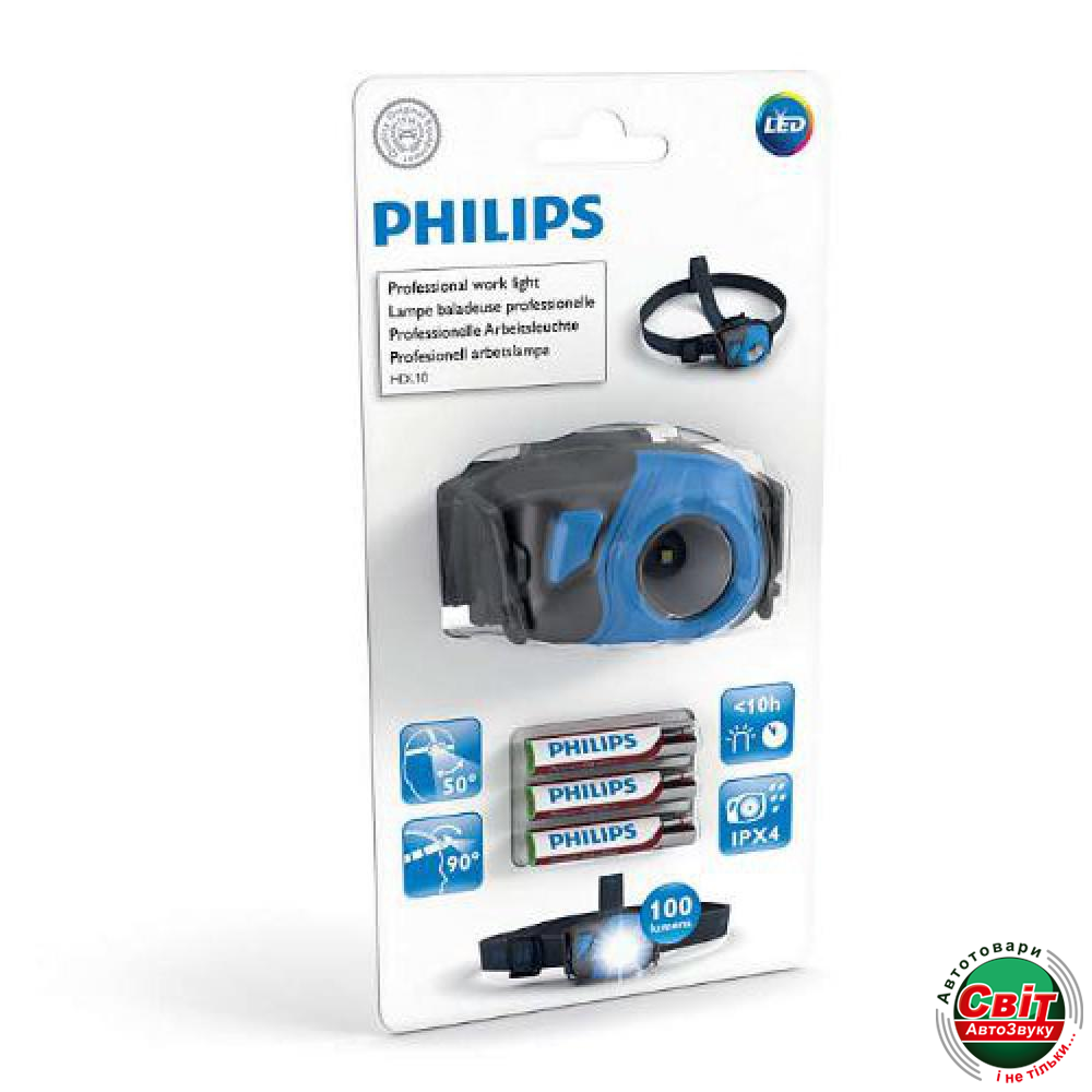 • Налобний світлодіодний ліхтар Philips HDL10 випромінює світлодіодний світло 100 лм у форсованому режимі, щоб ви могли розгледіти навіть найдрібніші деталі.