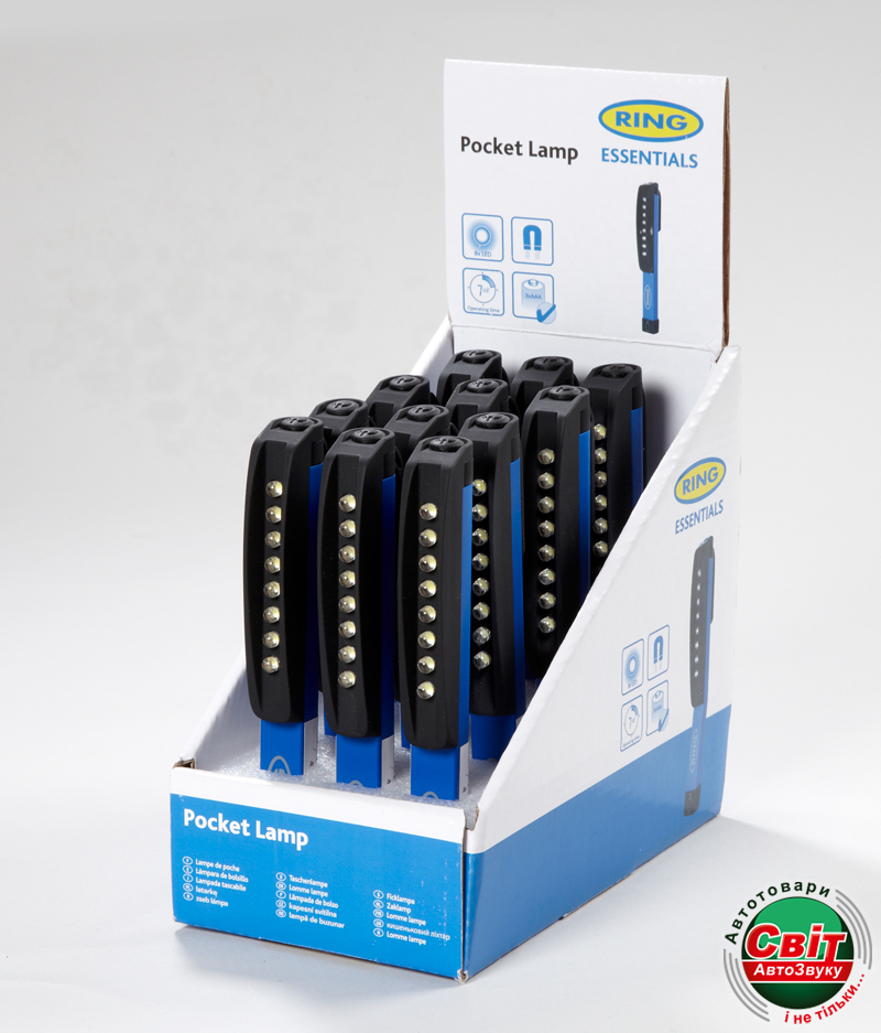 - Карманный фонарь с поворотной клипсой и магнитом для фиксации в труднодоступных местах.
