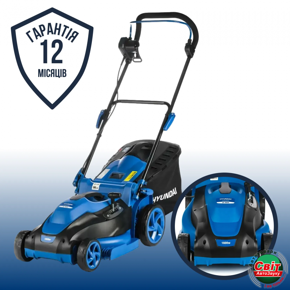 - Потужний електродвигун: Завдяки електродвигуну потужністю 1600 Вт, газонокосарка Hyundai LE 3820 стає справжнім робочим конем. Цей двигун забезпечує надійне прискорення, що дозволяє легко косити навіть високу траву.