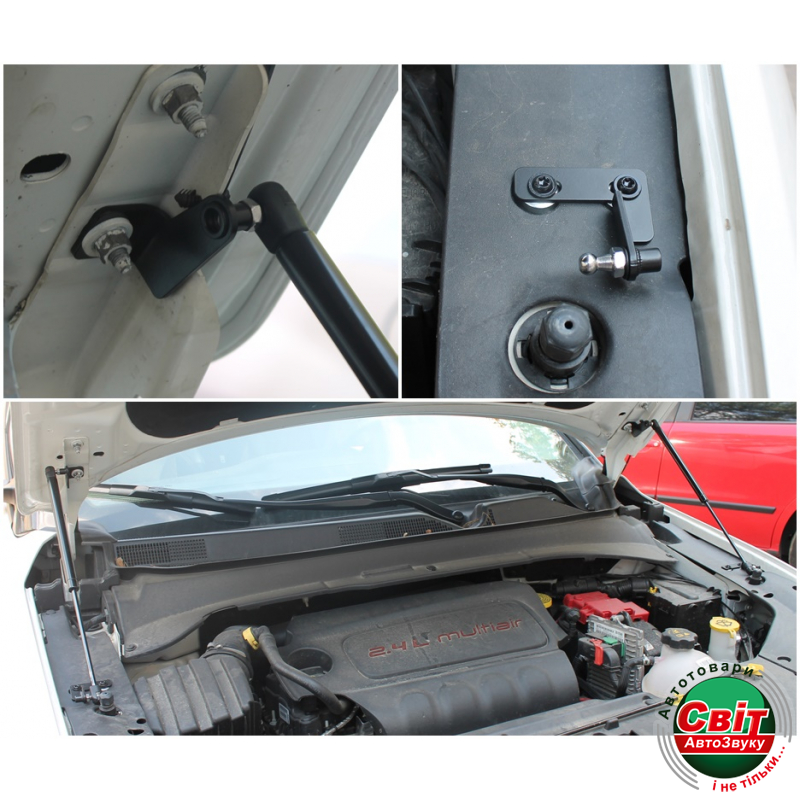 До цього кріплення ставиться газовий упор, який кріпиться до капоту.