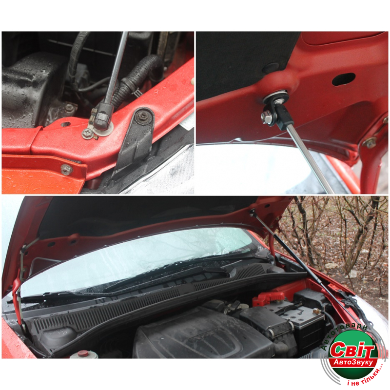 До цього кріплення ставиться газовий упор, який кріпиться до капота.