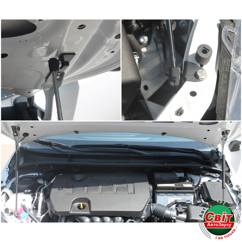 Газовий упор капота Toyota Corolla 12 (2018+) (2 шт)- Установка в штатні місця - зазвичай не вимагає свердління