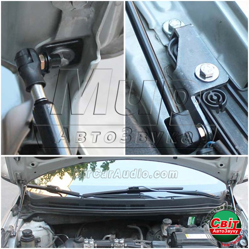Газовий упор капота Kia Rio 3 (2012+) (2 шт)Монтується без доопрацювання авто (не потрібно свердлити, різати і т. д.), використовуються тільки заводські місця автомобіля.