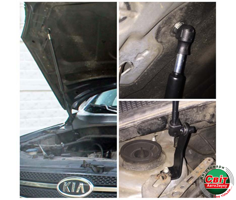 Газовий упор капота Kia Sportage 2 (2004-2010) (1 шт)Монтується без доопрацювання авто (не потрібно свердлити, різати і т. д.), використовуються тільки заводські місця автомобіля.