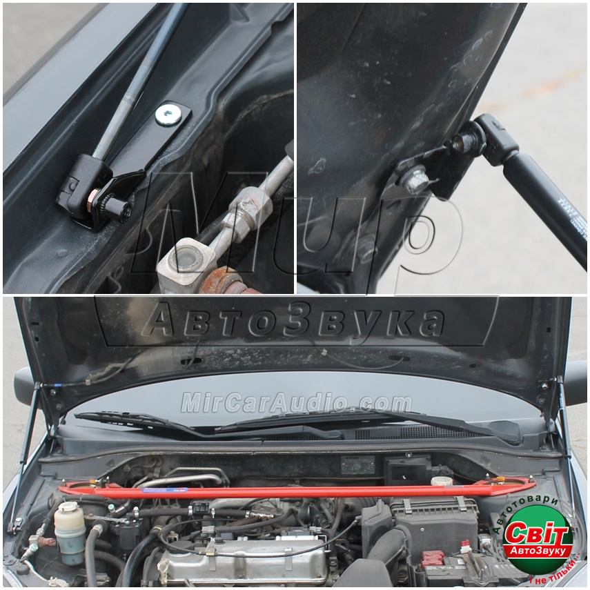 Газовий упор капота Mitsubishi Lancer 9 (2) (2004-2010) (2 шт)Монтується без доопрацювання авто (не потрібно свердлити, різати і т. д.), використовуються тільки заводські місця автомобіля.