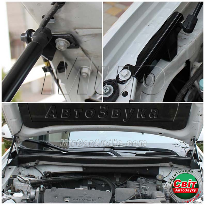 Газовий упор капота Mitsubishi Outlander 3 (2012+) (2 шт)Монтується без доопрацювання авто (не потрібно свердлити, різати і т. д.), використовуються тільки заводські місця автомобіля.