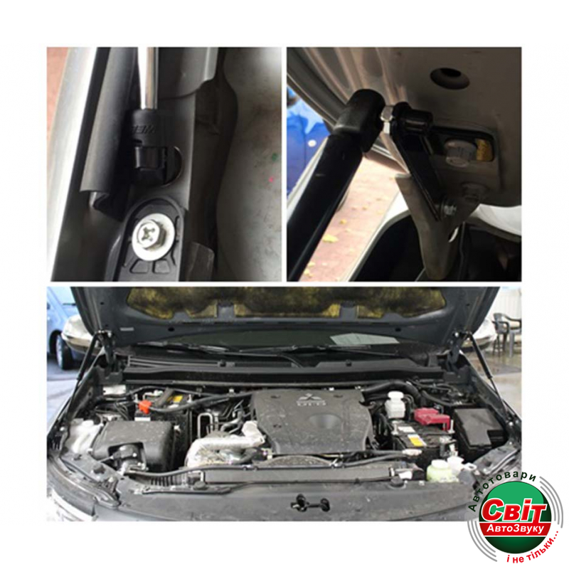 Газовий упор капота Mitsubishi Pajero Sport 3 rest / L200 (2019+) (2 шт)- Установка в штатні місця - зазвичай не вимагає свердління