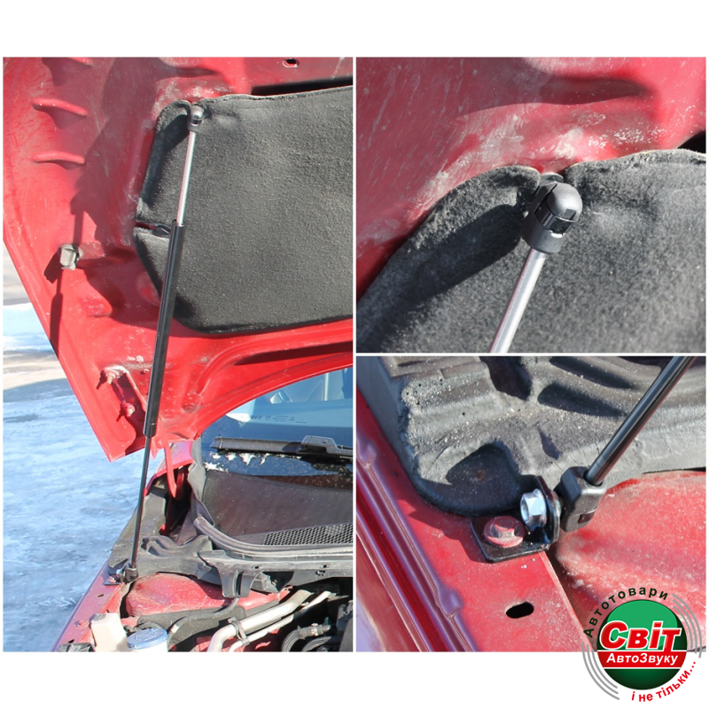 До цього кріплення ставиться газовий упор, який кріпиться до капота.