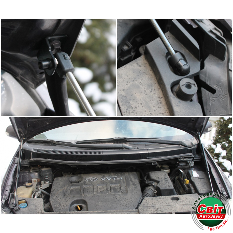 Газові упори капота для Toyota Auris 2004-2011 відмінно допомагає водіям якщо необхідно міняти рідину омивачів, відкривати капот і т.д. Допомагають заощадити час, не бруднити руки та зручніше відкривати та закривати капот.