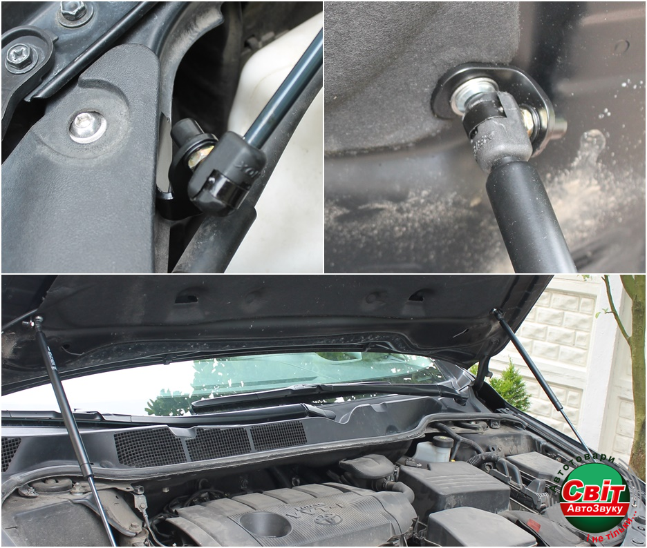 Газовий упор капота Toyota Venza (2008-2015) (2 шт)Монтується без доопрацювання авто (не потрібно свердлити, різати і т. д.), використовуються тільки заводські місця автомобіля.