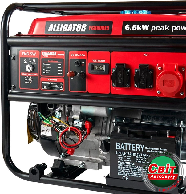 - ›Генератор Alligator PG8000E3 бензиновий 6,5кВт (ном 6,0кВт) з електростартером, 1 та 3 фази