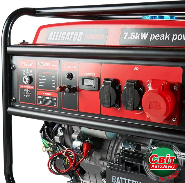 - ›Генератор Alligator PG9000E3 бензиновий 7,5кВт (ном 7,0кВт) з електростартером, 1 та 3 фази