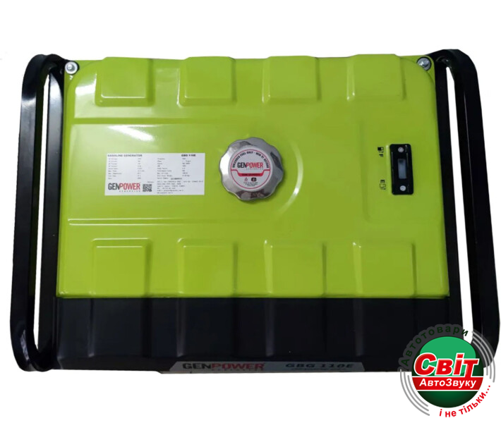 Генератор бензиновий GenPower GBG 110EGenPower GBG 110E - потужний генератор для автономної та аварійної подачі електроенергії для будівельних майданчиків, саду, відпочинку та дачі. Розрахований на живлення електроспоживачів сумарною потужністю 8,4 кВт (Максимум). Забезпечить електрикою всі прилади будинку (в тому числі енергоємні), а на будівельному майданчику - всі інструменти. Використовується для енергонезалежності заміських будинків, офісів, торгових точок в аварійних ситуаціях на лініях електропередачі, а також як мобільне джерело електрики для комунальних і дорожніх служб.