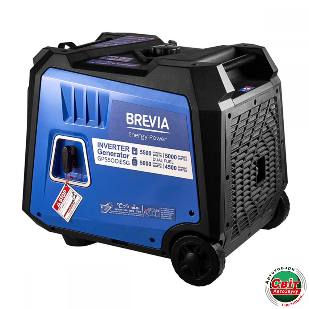 Генератор Brevia GP5500iESG інверторний газобензиновий 5,5кВт DUAL FUEL (ном 5,0кВт) з електростартером