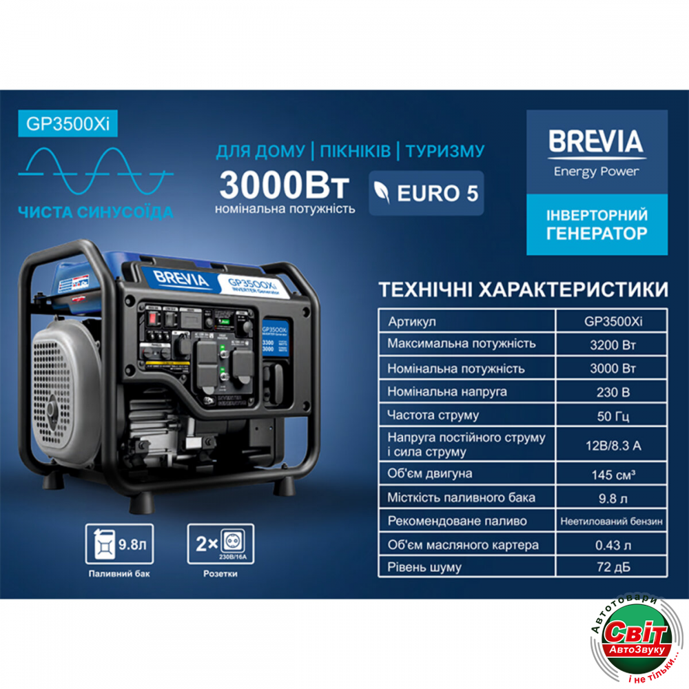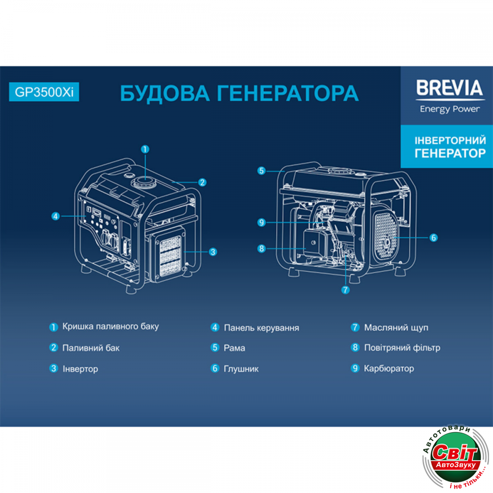 - ›Генератор Brevia GP3500Xi інверторний бензиновий 3,0кВт (ном 3,2кВт)